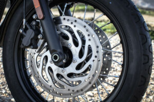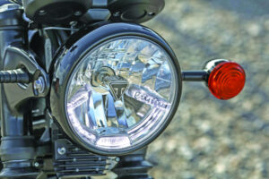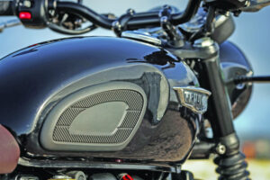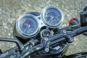 Tecnicamente são iguais, e em ambas percebe-se o cuidado colocado no seu desenvolvimento. A moto tem uma linha muito limpa, como um motor onde praticamente não se encontram tubos ou cabos eléctricos à vista. Mesmo o radiador está colocado na vertical, na frente do motor, muito bem disfarçado, e os seus tubos ligam-se por trás. Muito bem integrado na estrutura, este elemento “moderno” passa despercebido no conjunto clássico que a marca procura. O motor é totalmente novo, cresceu de “novecentos” para “mil e duzentos”, mas as suas dimensões exteriores são semelhantes. É uma unidade mais compacta, mas o desenho clássico mantém-se. Há detalhes muito especiais, como corpos de injecção que fazem lembrar carburadores.
