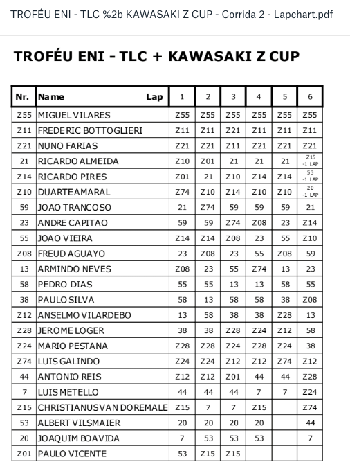 No final da 2ª Corrida a classificação foi a seguinte :