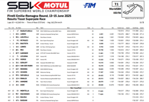 Uma emocionante Superpole Race aconteceu esta manhã em Misano , com uma reviravolta imediata que mudou o destino da corrida. Na largada, Axel Bassani tentou atacar Nicolò Bulega na primeira curva, mas acabou por perder a frente da sua Bimota levando por arrasto o seu inocente compatriota. Um golpe duro para Nicolo – que também caiu no chão durante o aquecimento – que só pôde assistir à corrida solitária de Toprak Razgatlioglu rumo ao sucesso .