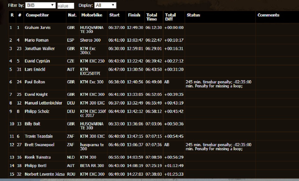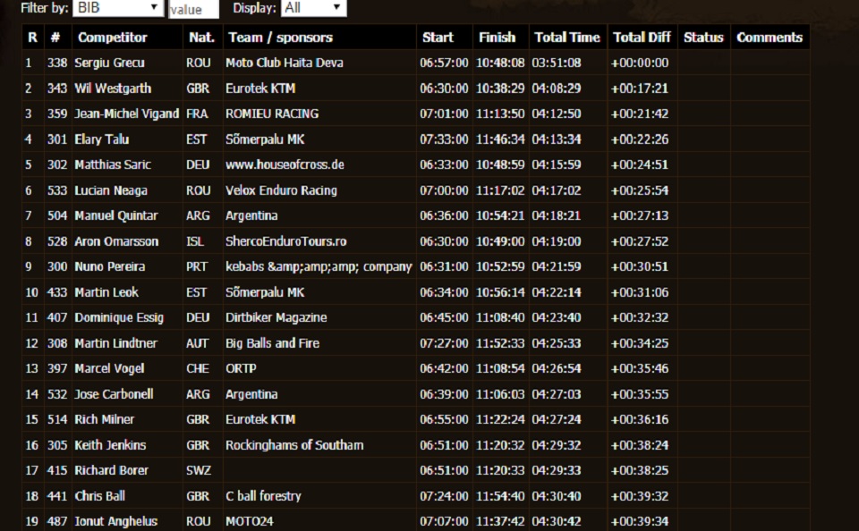O piloto da Husqvarna realizou uma tirada imaculada e com isso foi o mais forte para além de ter ascendido naturalmente ao primeiro posto da classificação geral. O recordista de vitórias na prova romena deixou deixou o segundo classificado Mário Roman (Sherco) a 10m17s. No terceiro posto ficou Jonny Walker (KTM) num dia onde o piloto britânico foi forçado a abrir a pista. Walker foi 16m31s mais lento do que Jarvis numa tirada onde três construtores diferentes estiveram representados nas três primeiras posições.