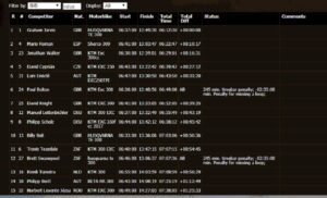 O surpreendente David Cyprián (KTM) foi quarto, enquanto o experiente Lars Enöckl (KTM) completou o top cinco. O dia ficou ainda marca pelo abandono do vencedor do Prólogo da véspera, Alfredo Gomez. O piloto da KTM sofreu uma queda nos quilómetros iniciais do dia, que deixou em mau estado a sua perna direita e originou ainda mazelas nas costas. Mais à frente na etapa o abandono veio a ser consumado assim como o de Wade Young. O piloto da Sherco, que havia sido o mais forte na qualificação para o Prólogo, sofreu uma aparatosa queda numa zona de descida, que resultou em lesões em duas vértebras bem como num pulmão. Quem também não teve um dia fácil foi Billy Bolt, segundo ontem no Prólogo, que hoje quedou-se apenas pela 10ª posição a mais de 50 minutos do seu companheiro de equipa na Husqvarna.