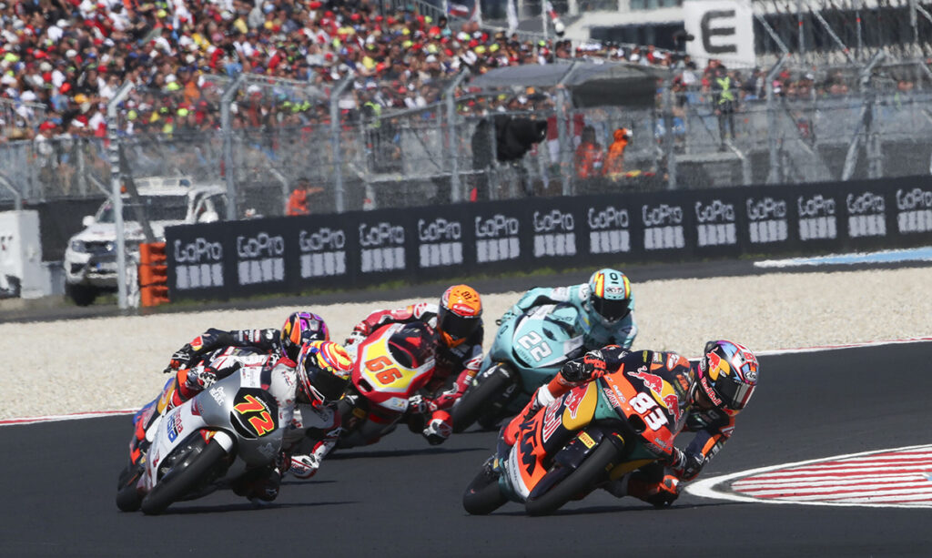6 ou 7 pilotos a alternar no comando a cada corrida, recuperações de 16º ao pódio e quedas com fartura são a marca das pequenas Moto3