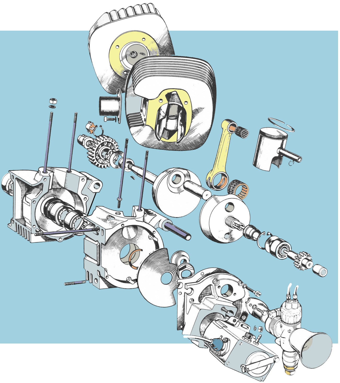 Eventualmente, as motos prateadas e verdes acabaram por recolher ao museu, mas nos seus motores teve origem a mais espantosa evolução da história das dois tempos, central a todas as motos de GP que se seguiram.
