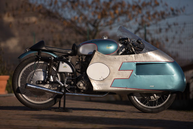 Em 1948, Giovanni redesenhou as suas motos de corrida e instalou uma dupla árvore de cames à cabeça.