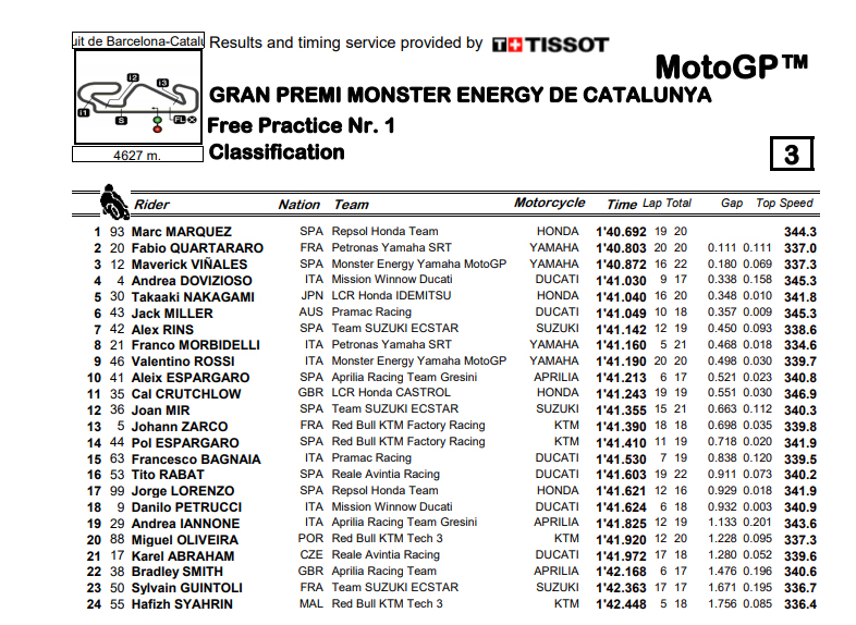 Viñales cumpriu a sua promessa de andar à frente em Barcelona, colocando-se no comando da primeira sessão livre à frente de Marc Márquez com um 1:40.872.