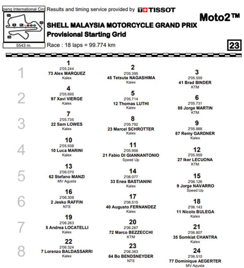 A 8 minutos do final, Márquez saltou para a pole provisória com 2:05.244, mas um minuto depois Nagashima era segundo e depois Binder, com Vierge e Lowes a mostrar-se também na segunda fila.