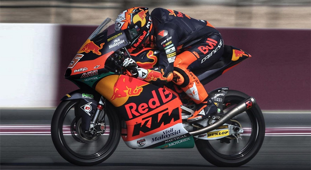 Jogos de cone de ar ao longo da reta viam 5 ou 6 pilotos chegar lado a lado ao fim da reta da meta do Qatar e Gabriel Rodrigo tomou o comando enquanto Binder de repente se encontrava em quinto e Fenati era penalizado com uma dupla volta longa por pular a partida, enquanto o endiabrado rookie Acosta com 16 anos de idade se colocava no comando.