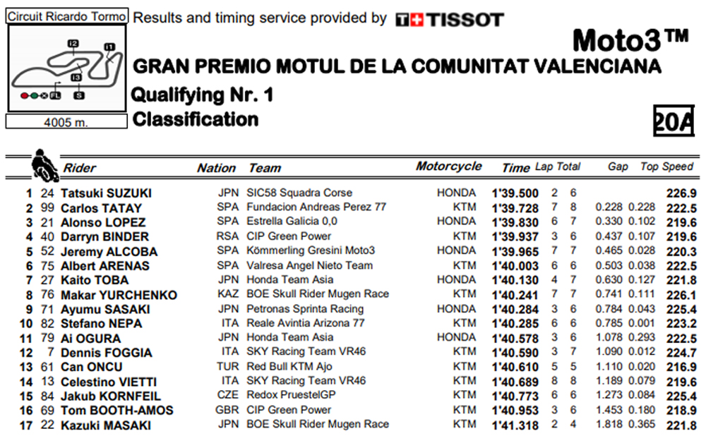 A uns segundos da bandeira, Suzuki permanecia o mais rápido com 1:38.500, seguido de Tatay, Lopes e Binder, a entrar também nos qualificados mesmo à justa.