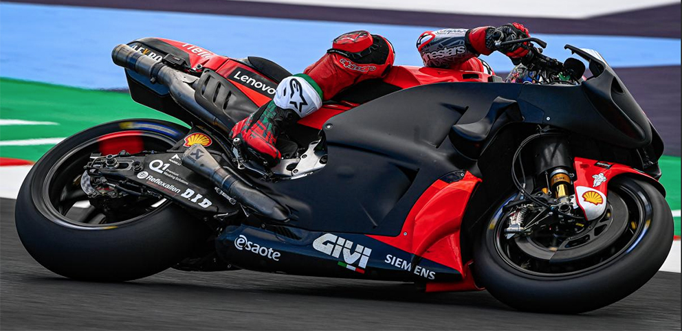 Jorge Martin (Pramac Racing) também completou algumas voltas com o novo pacote de aerodinâmica, tendo a Ducati de facto dois novos desenhos de aerodinâmica, em que o segundo divide uma parte do desenho da aerodinâmica em dois elementos.