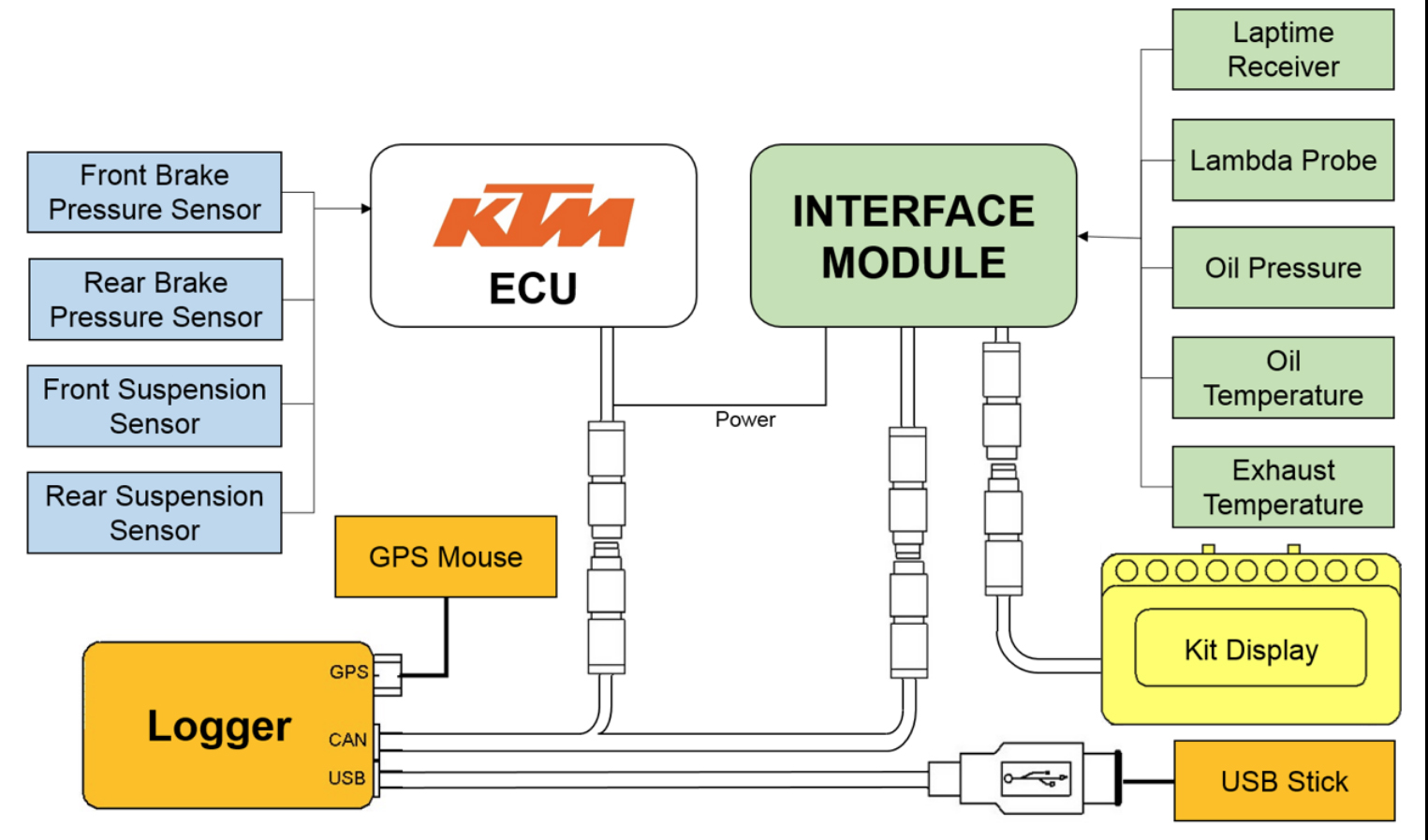 Os sensores da 2D também fazem interface com a ECU de controlo Magneti Marelli e dela tiram todos os dados de comportamento do motor, como regime, posição do acelerador, atitude das borboletas, movimento da mão do piloto, pressão de admissão, temperaturas e velocidade de admissão no motor etc.