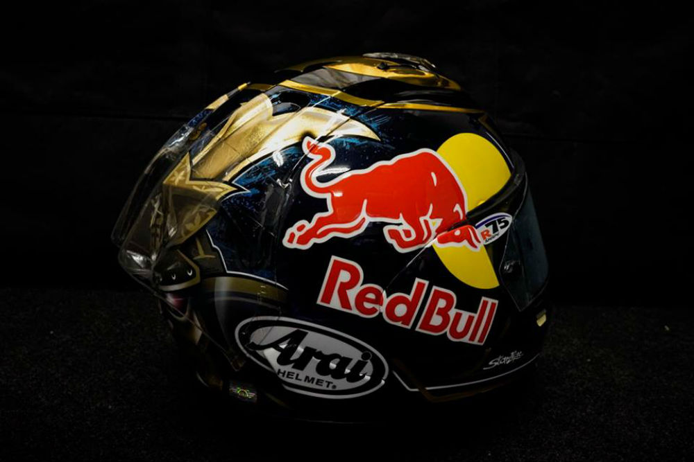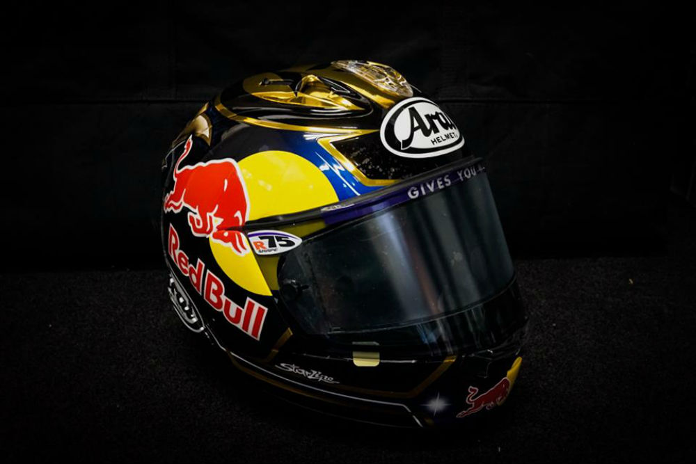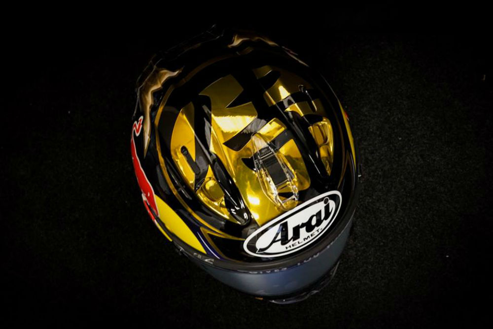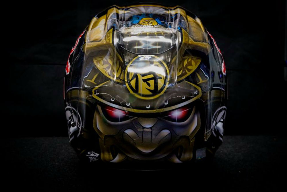 O piloto da Hona, que normalmente utiliza um capacete inspirado na cultura oriental, mostrou um novo desenho para a corrida de Motegi, com um samurai de ouro.