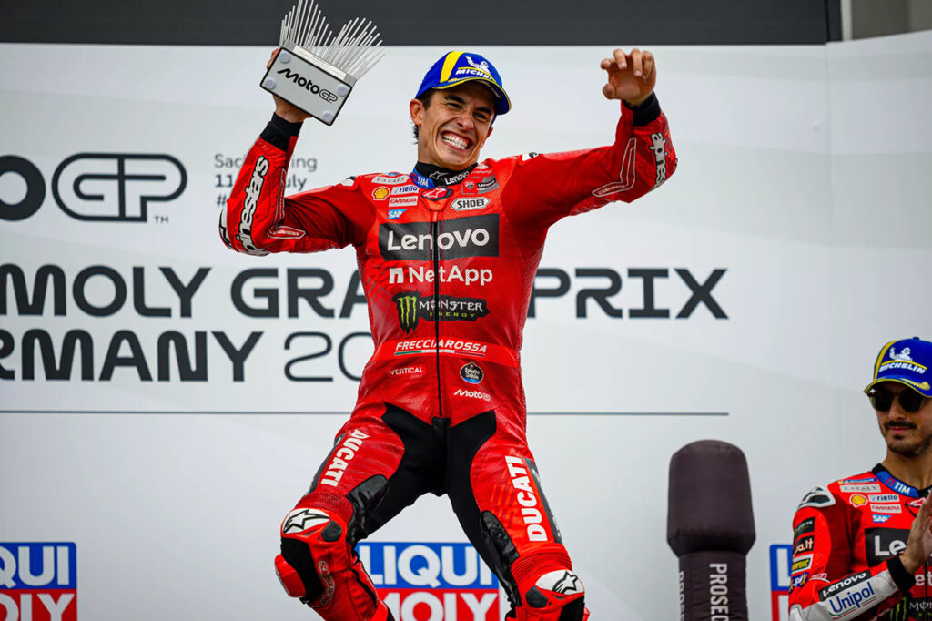 “Há vontade das duas partes, mas ainda é cedo para ter todos os elementos definidos. Por outro lado, a nossa filosofia é sempre desenvolver jovens pilotos da casa, como fizemos com o ‘Pecco’ e o Martin, sem esquecer o Aldeguer… mas após ganhar com o Marc este ano, estamos abertos a tudo!”