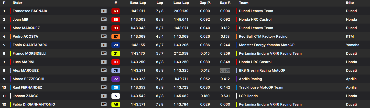 O único piloto que pode “roubar” o título a Marc Márquez, o seu irmão, Alex Márquez (+0.360), terminou na 8ª posição.