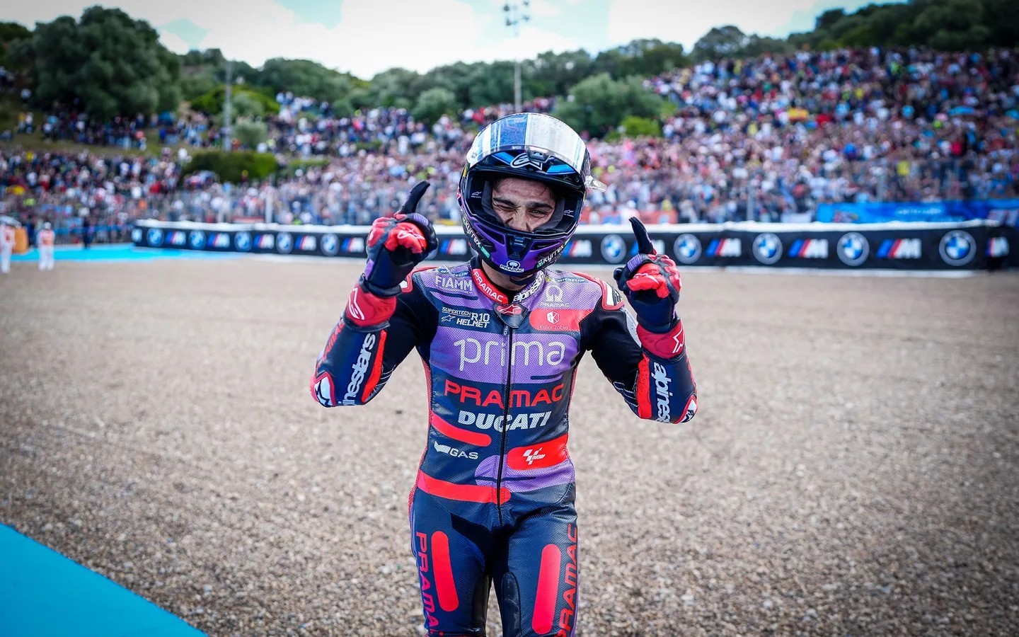 Jorge Martín conquistou a vitória na corrida sprint de Jerez, com muitos dos seus rivais (incluindo Marc Márquez, que parecia mais rápido) a caírem à sua volta.