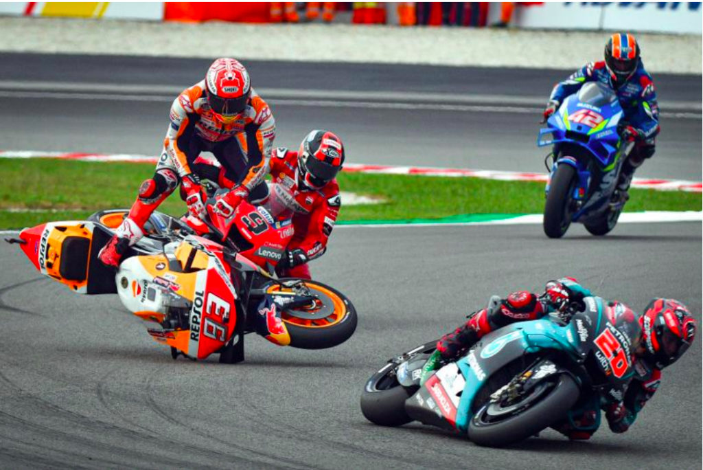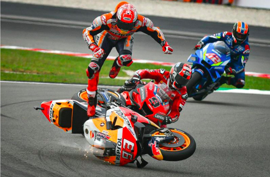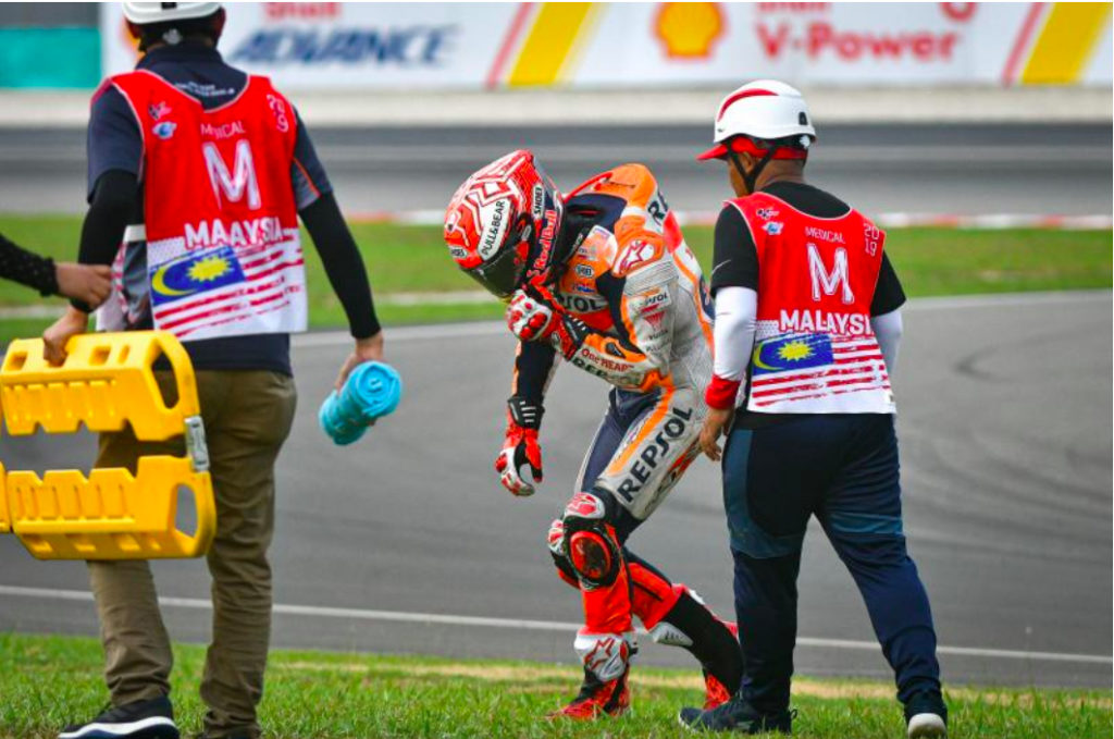 Mesmo Marc Márquez (Honda Repsol) – o rei das escapadelas – não conseguiu salvar esta. O acidente do oito vezes Campeão do Mundo na Q2 do Grande Prémio Shell da Malásia foi enorme, mas felizmente o número 93 escapou relativamente ileso, foi à clínica do circuito ser visto e pouco depois estava a dar autógrafos na boxe como se nada fosse, sem coxear ou fazer expressões de estar dorido, nem dar parte de fraco, uma grande parte da sua estratégia para desencorajar os adversários, fazendo-os acreditar que é uma espécie de extra-terrestre praticamente invulnerável.