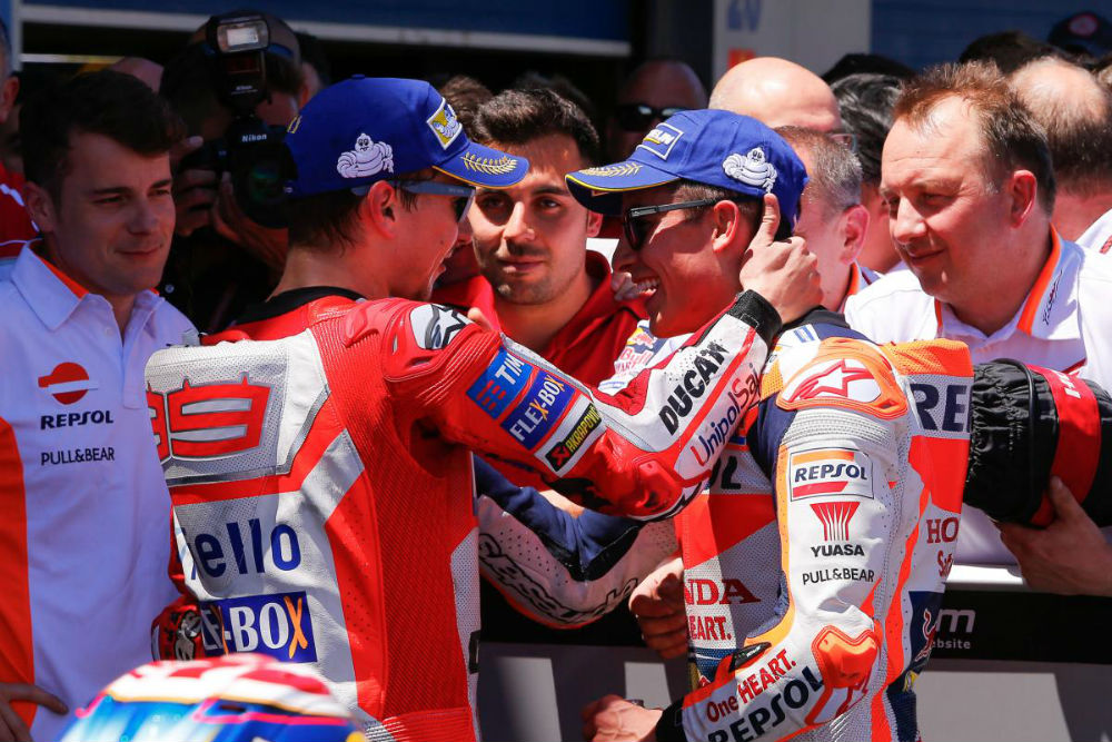 Dois pilotos que já tiveram as suas desavenças, mas nesta fase temos Marc Márquez a sair em defesa de Jorge Lorenzo, que está envolvido em mais um bate-boca com Andrea Dovizioso, seu atual colega na Ducati.