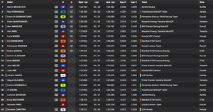 Na terceira posição fica Fabio Di Giannantonio (+0.420) perseguido por Fabio Quartararo (+0.434) e Alex Márquez (+0.453) na quarta e quinta posição, respetivamente.