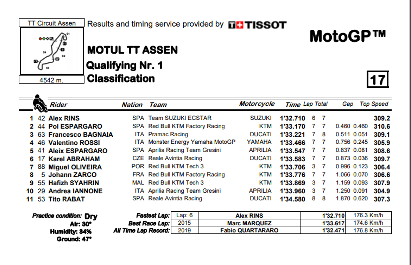 Depois de ter sido dos mais rápidos e ter mesmo liderado a FP4, era quase estranho ver Rins a tomar parte na Q1, até nos lembrarmos que no último treino anterior, o espanhol tinha ficado apenas em 11º, daí a sua presença ali.