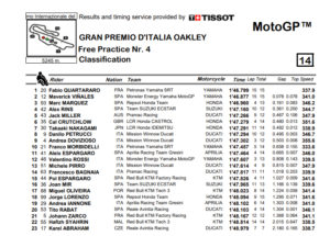 Ambos viriam a suplantar Márquez, invertendo as posições, pelo que Quartararo foi mesmo o mais rápido da sessão com um tempo de 1:46.799…