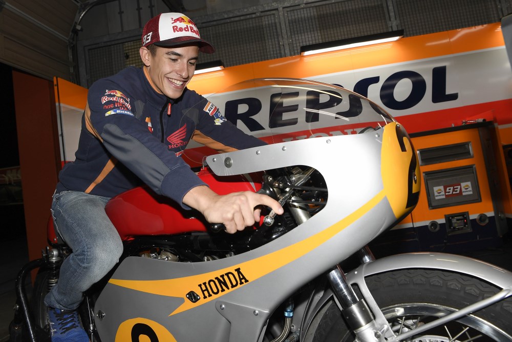 Numa sessão fotográfica que contou com os atuais pilotos da equipa da asa dourada Marc Márquez e Dani Pedrosa, os dois pilotos espanhóis foram fotografados com a moto que conquistou o titulo para a Honda à meio século. .