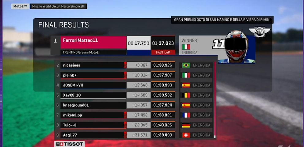 Às MotoGP seguiram-se as MotoE, em que o Campeão real, Matteo Ferrari, fez a pole seguido de Jordi Torres, que se estreia nas MotoE este ano e do Brasileiro Eric Granado, que disse que só treinara uns dias antes na Playstation.