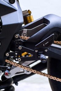 Nesta moto não conte com luz, piscas ou mesmo luz de matricula. A Ago TT é uma moto especifica de circuito e por isso é equipada com pneus slick da Pirelli.