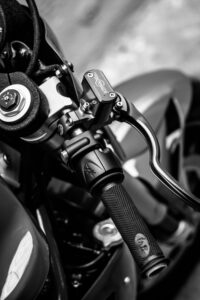 Um exemplo perfeito deste detalhe são os parafusos anodizados de regulação da sofisticada suspensão dianteira Marzocchi juntamente com conta quilómetros analógico, uma pura contradição de estética que encaixa na perfeição.