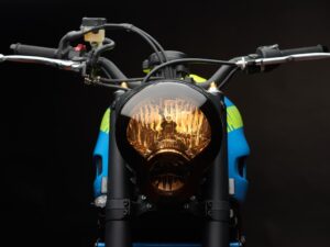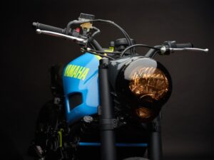 A decoração deste modelo faz uso dos tons da Yamaha Racing, ou seja do azul e amarelo o que lhe conferem um desenho ligeiro mas inconfundível. Por tudo isto bem se pode dizer que estamos perante um trabalho de transformação bem conseguido de uma moto urbana bem ao jeito ‘tracker’ e que promete dar outro colorido as estradas nesta época estival.