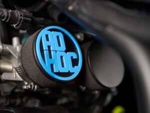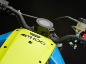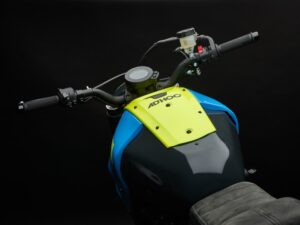 Os detalhes personalizados têm uma importância determinante e em nada prejudicam a capacidade de condução desta Yamaha XSR700 que apresenta nesse capitulo uma condução bastante divertida e agradável. A Ad Hoc, começou por transformar a frente da moto, onde instalou diferentes peças Yamaha provenientes de outros modelos. Por exemplo da MT09 foi o usado o guiador, da YZF-R6 a forquilha, os travões de disco, a bomba de travão e a embraiagem. Finalmente, da MT01 foi aproveitado o farolim e o seu suporte.