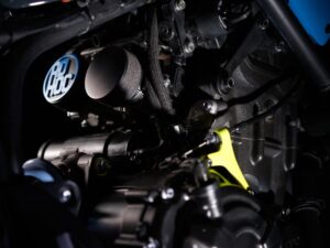 O escape de série da XSR700 foi eliminado optando-se por um mais largo da SC Project que confere um som inconfundível do trabalhar da moto e que transmite a sua verdadeira raça. Já o sub quadro traseiro foi substituído por um aparafusado que permite aceder às ferramentas e à bateria da moto.