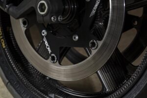 A versão Café Racer do modelo inclui jantes ultraleves em fibra de carbono da Rotobox e avanços da Gilles Tooling. Um tubo de escape em titânio da Akrapovič para a YZF-R1 completa a moto quanto à performance.