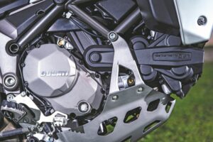 O conhecido motor Testastretta com o sistema DVT, que fecha mecânicamente as válvulas de admissão e escape com a mesma precisão com que estas são abertas, permitindo algumas melhorias de funcionamento por exemplo em baixa rotação onde é necessária menor força de atuação sobre as válvulas pela ausência de molas. Com os seus 1198cc de capacidade o motor italiano entrega uns generosos e perfeitamente controláveis com a ajuda da eletrónica 160 cavalos de potência máxima ás 9.500rpm, com o binário anunciado a ser de 136Nm ás 7.500rpm. Tudo isto casa na perfeição com a caixa de seis velocidades com a primeira relação da mesma a ser mais curta que nas restantes ‘irmãs’ da familia Multistrada. Tecnologicamente encontramos igualmente uma verdadeira ‘montra’ de soluções que podem inclusivamente ser controladas através de uma aplicação para smartphone com o nome de Multistrada Link que ajuda através de ligação bluetooth gravar e consultar numerosos parâmetros de viagens desde o consumo a ângulos de inclinação. Ao mesmo tempo o ecrã TFT permite seleccionar todos os parâmetros de funcionamento da moto nas suas mais diversas opções: controle de tracção, controle anti-cavalinho, sistemas multimédia ou o ABS são apenas alguns deles, que funcionam em conjunto com os faróis direccionais sendo estes totalmente LED. A ignição é igualmente ‘mãos-livres’ de forma a proporcionar uma verdadeira experiência única de cada vez que saímos para a estrada com a Multistrada 1200 Enduro, seja para ir ao café ou para atravessar um continente.