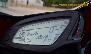 Painel de instrumentos e funções – LCD multi-funcional com velocímetro digital, e modos de aceleração, controle de tracção, computador de bordo, tacómetro, luz de reserva de gasolina com interruptores de controle nos punhos