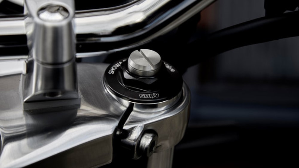 As aletas de arrefecimento têm apenas 2 mm de espessura e o motor, com as suas coberturas laterais polidas e as tampas da árvore de cames cromadas remontam a uma era de motos clássicas.