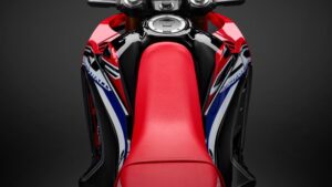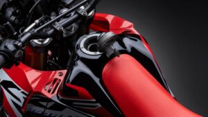 A CRF250 Rally está disponível nas cores de competição Extreme Red da Honda – tal como a 450 para competições no deserto – como base, com destaques a preto e branco inspirados nas máquinas de fábrica da HRC.