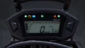 O painel de instrumentos digital, está dotado com velocímetro, conta-rotações, indicador de nível de combustível e relógio, apresenta as informações com nitidez para fácil leitura.