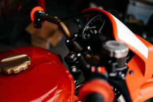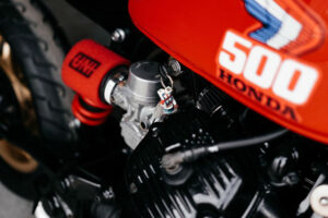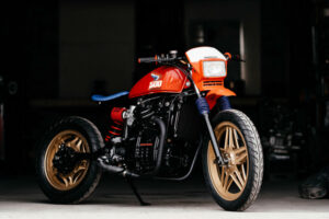 Com a traseira cortada a construção desta autêntica obra de arte com a montagem de um novo assento bem como do depósito de combustível e um novo design do farol dianteiro, que foi retirado de uma dirtbike da Honda. Os detalhes finais incluem um conjunto de pormenores gráficos que salientam o nome Honda e tornam ainda mais especial esta moto.