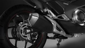 Esta nova Honda vem equipada com um silenciador e um protector do silenciador em formato pentagonal mais pequeno e leve e que apresenta um aspecto bastante elegante.