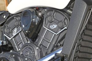 A Scout Sixty é uma moto que surpreende pelo fantástico equilíbrio de todos os seus elementos. Tem uma imagem clássica, mas tem também a quantidade certa de tecnologia para oferecer um comportamento dinâmico muito interessante. O seu motor é um moderno bicilíndrico, com refrigeração líquida, duas árvores de cames e quatro válvulas por cilindro, capaz de uma resposta muito directa e fácil de controlar, tudo qualidades que já são reconhecidas ao modelo original. Uma das razões que leva à criação desta versão é exactamente atingir um segmento mais jovem do mercado. O motor da Indian Scout Sixty é o elemento que sofre as principais alterações mecânicas, começando pela redução da cilindrada em 134 cc, que resulta numa potência máxima de 78 cv e um binário de 88,8 Nm. O seu funcionamento é muito equilibrado quase sem vibrações.