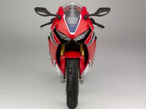 A nova Fireblade na sua versão SP segundo a marca nipónica atinge os 189 cv às 13.000 rpm e viu o seu peso reduzido em 14%, o que é o mesmo que dizer que existiu uma redução de 15 quilos. Grande parte desta redução de peso deveu-se ao novo chassis, que é 10% mais flexível do que o anterior. Graças à utilização de magnésio e a uma redução das peças individuais, o motor pesa também menos dois quilos. Quem também não escapou a esta diminuição foi a carenagem, que foi reduzida em 24mm. Perante tamanhas reduções, a nova Fireblade tem o peso de 195 quilos.