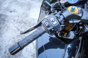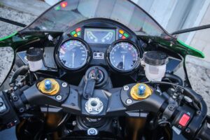 O botão power mode permite selecionar a entrega de potência entre os modos Full e Low. No primeiro, temos a potência toda, no segundo, a resposta é mais suave e só 75% do “poder total” é confiado à roda traseira. Além disto, o controlo de tracção (KTRC) tem 3 modos de intervenção, do mais conservador ao mais liberal, mas pode ser desligado. Isto significa que a combinação “Low” com o “Modo 3” do KTRC , é a faceta mais civilizada que a ZZR consegue assumir e ideal em piso escorregadio.