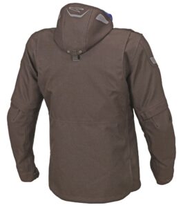 Em primeiro lugar, e será umas das primeiras características a saltar à vista, o capuz que sendo amovível e à prova de agua, nos permite proteger da chuva quando tiramos o capacete e nos temos que deslocar de um lado para o outro. E se pensa que o capuz irá ser incomodo quando anda na moto porque irá oferecer resistência ao vento, desengane-se porque tem um sistema de fixação nas costas através do deslizamento de uma fita por uma calha, o que contrariamente a uma convencional mola permite uma maior resistência ao vento. Simples e muito bem idealizado.