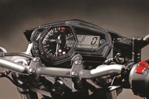 Às 2000 rpm já funciona bem, sobe com decisão, mas é para cima das 7000 rpm que a energia do bicilíndrico ganha nova força. É um motor de cariz bastante desportivo com o comportamento típico de um multicilíndrico. A faixa utilizável de rotações é ampla e o motor parece que nunca mais acaba de subir de regime. O limitador de rotações aparece muito tarde, perto da 13.000 rpm, quando o bicilíndrico começa a perder o fulgor. A caixa está bem escalonada para manter o motor na rotação certa e a embraiagem macia torna descontraída a utilização no pára arranca das horas de ponta. O facto de a moto ser bastante estreita, fora a zona do guiador, facilita o desenvencilhar das filas de trânsito.