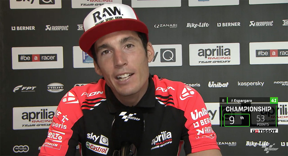 Aleix Espargaró da Aprilia Gresini parecia animado quando comentou a sua corrida em Assen, onde no entanto acabou mais uma vez em oitavo, um pouco longe do pódio que continua a escapar-lhe