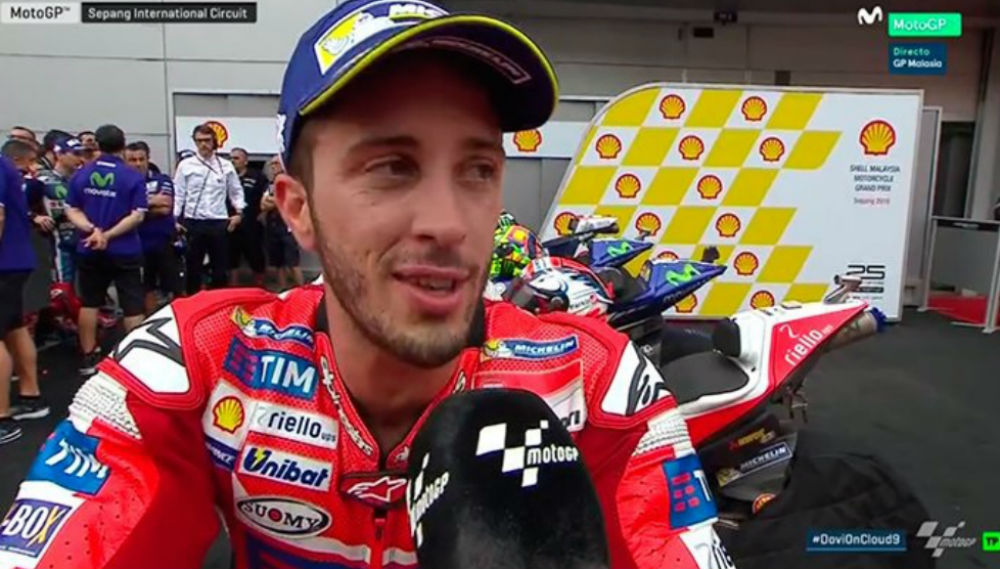 Andrea Dovizioso garantiu este domingo a sua segunda vitória no Mundial de MotoGP, ao vencer o GP da Malásia, a primeira vitória do italiano esta temporada e a segunda para a Ducati.