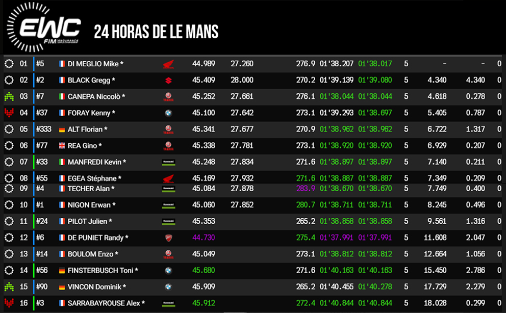 As 24 Horas de Le Mans começaram com sol e um grande arranque da Honda Nº5 de Mike Di Melgio que começou à frente, seguida pela Suzuki do SERT com Gregg Black aos comandos, e a Yamaha Áustria com Nicollo Canepa em rápida recuperação, a chegar a 3º após ultrapassar a BMW de Kenny Foray em poucas voltas…