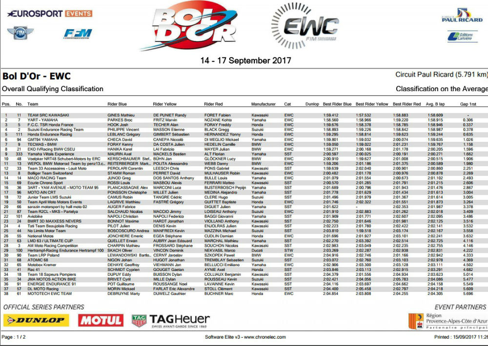 A equipa da SRC Kawasaki composta por Randy de Puniet, Fabien Foret e Mathieu Gines alcançou esta sexta feira a pole position para o Bol d’Or, primeira ronda do Campeonato do Mundo de Endurance(EWC).