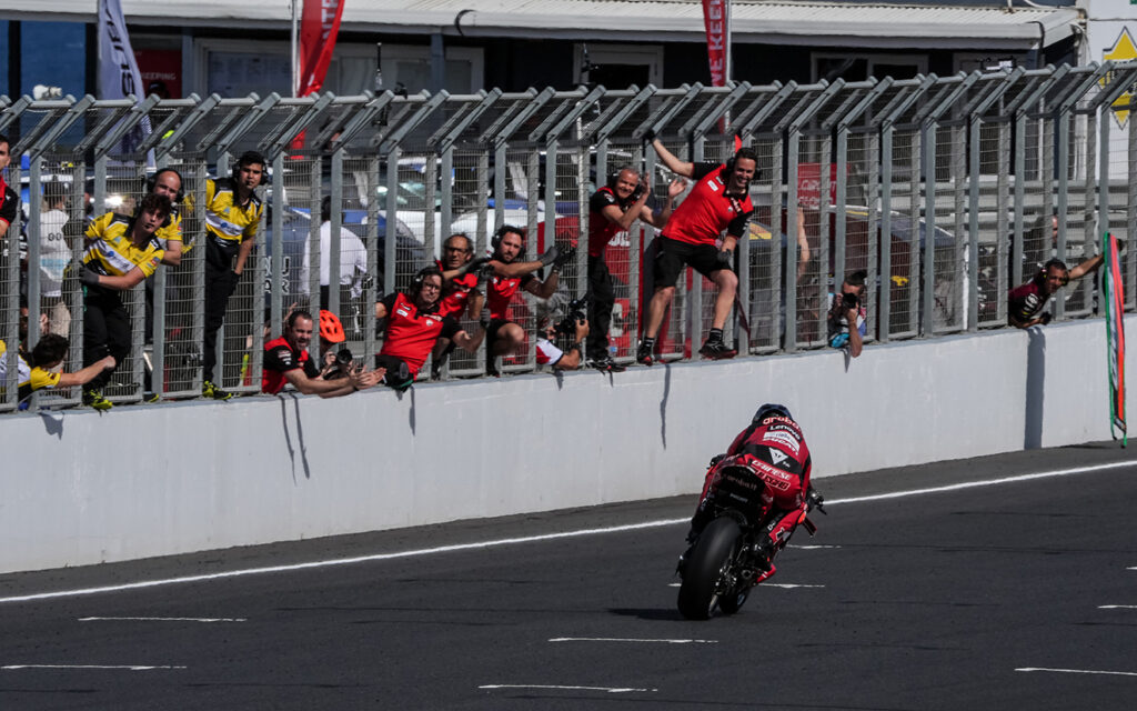 As Bimota acabaram coladas atrás de Bulega, que mantém a marca perfeita, duas vitórias de duas partidas na Ducati Aruba, neste começo de época.