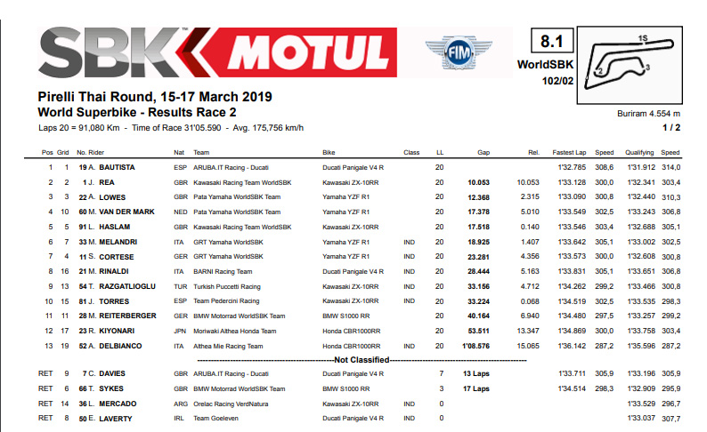 Que dizer de mais uma vitória de Bautista? Obviamente, no calor de Buriram, depois de tentarem coisas novas na corrida de Superpole, as equipas da frente reverteram para as afinações da corrida de Sábado, e Rea tentou o seu melhor para perseguir a Ducati sem sucesso.