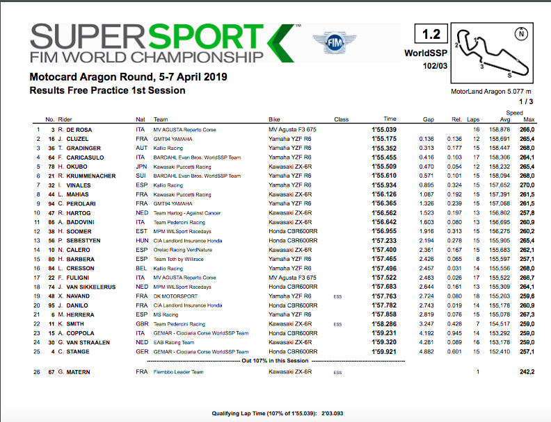 Foi um resultado inesperado, a prometer uma ronda em cheio na chegada do Mundial de Supersport à Europa: A sessão de abertura deixou Cluzel em segundo e Gradinger em terceiro, com Okubo a primeira Yamaha em 5~